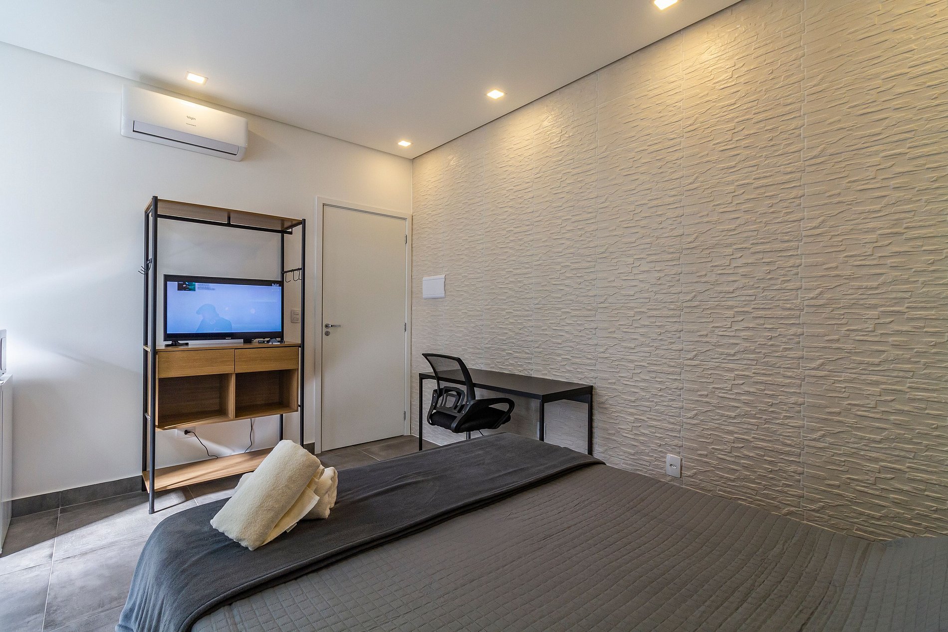 - Roupas de cama e toalha de banho também incluída na reserva.